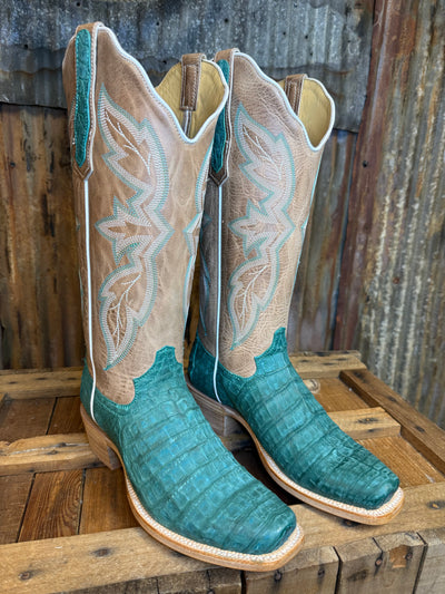 R. Watson Turquoise Nubuck Caiman Belly Western Boot