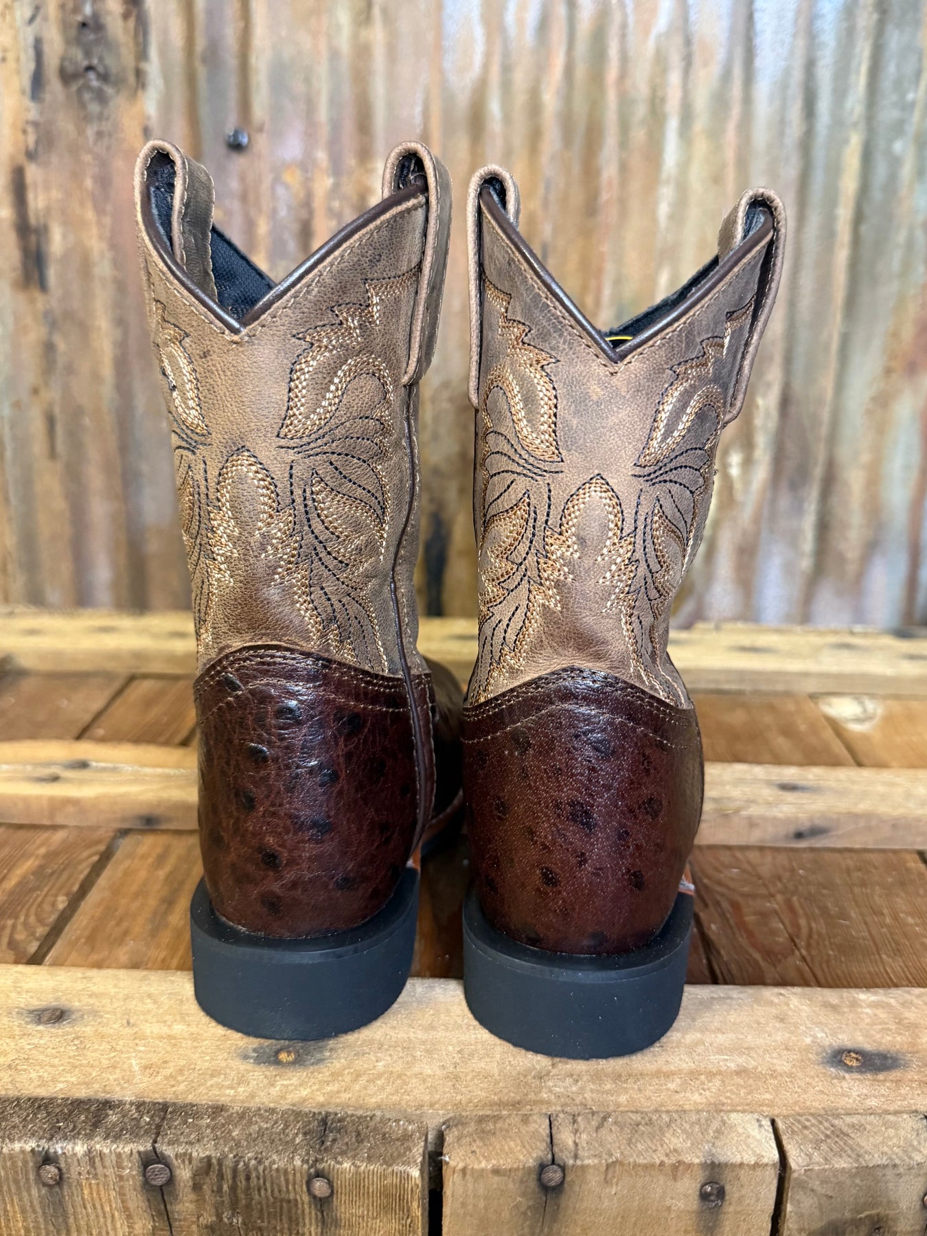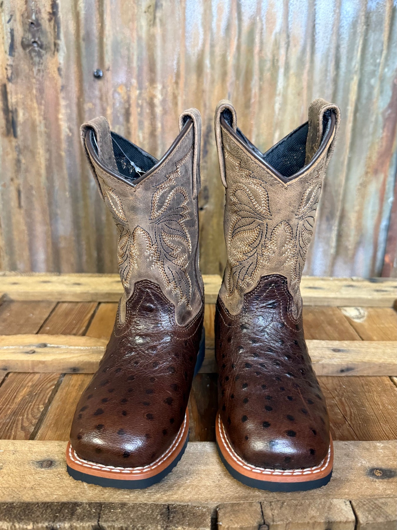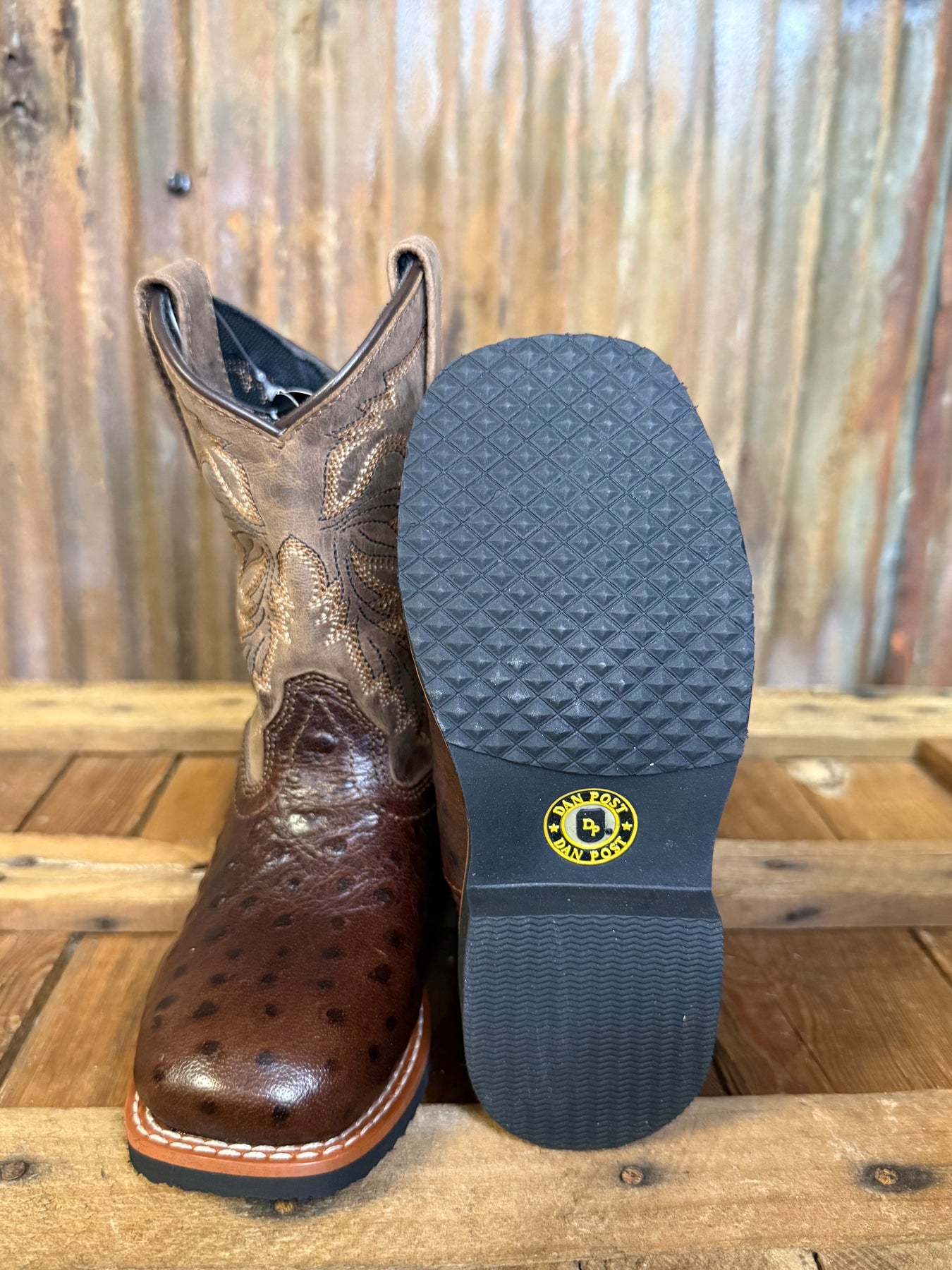 The durable rubber outsole ensures steady footing, while the ostrich print foot design brings a touch of flair to this rugged, hardworking boot.