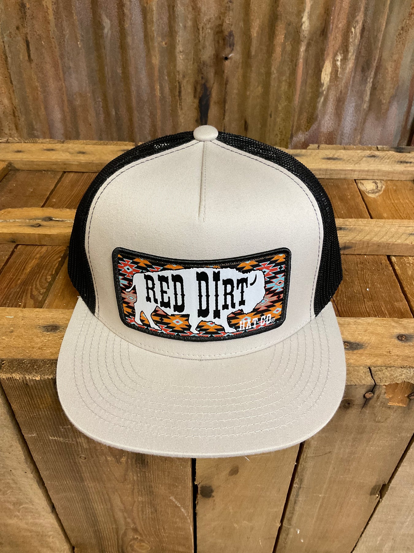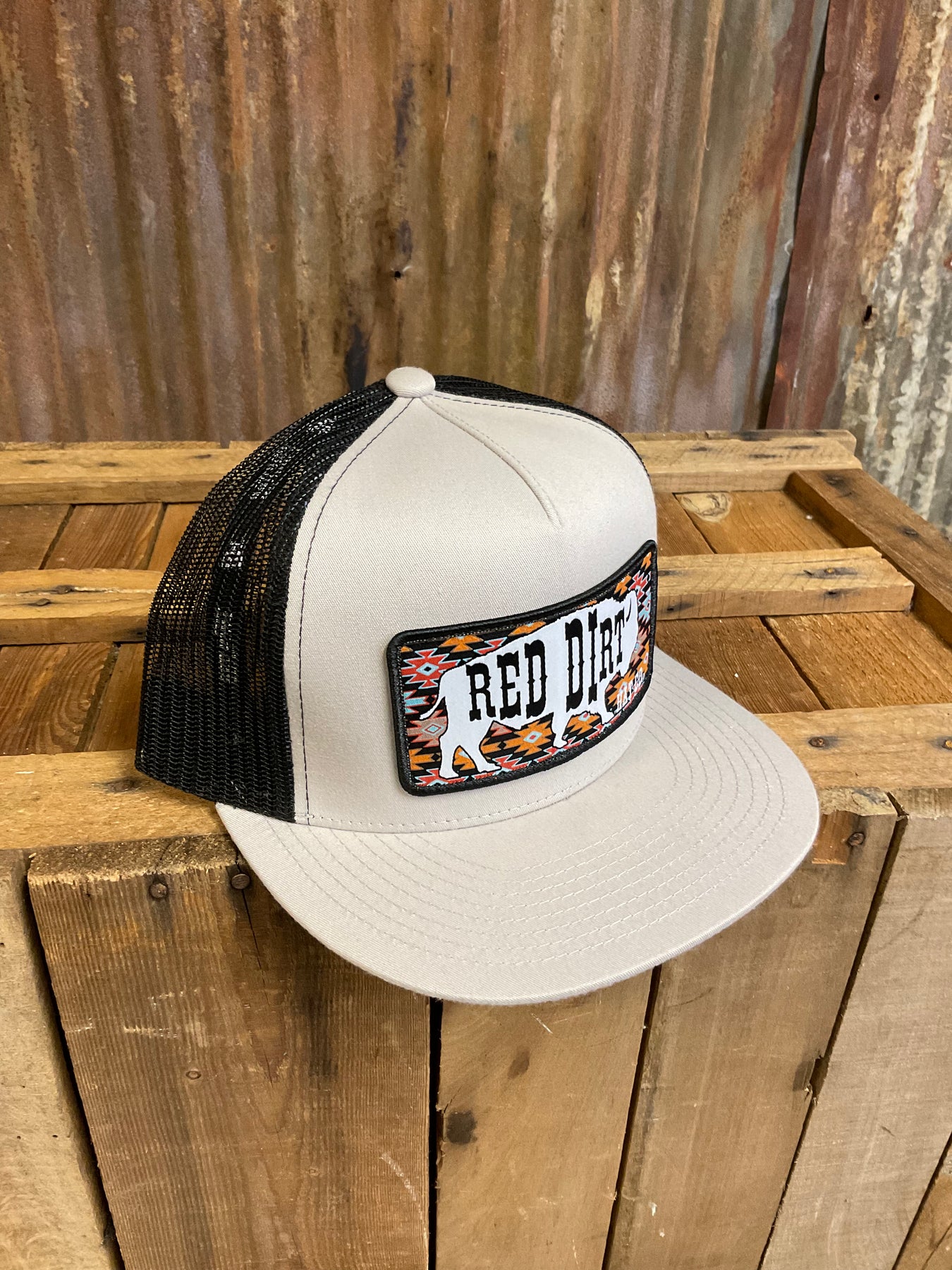 Silver and black Classic 5 panel style snapback cap featuring the “Great White Buffalo” patch.