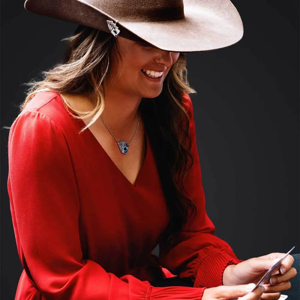 You'll always have a winning hand with the Four of a Kind Hat Clip. This unique piece features 4 silver tone ace playing cards. An ace of diamonds, ace of spades, ace of diamonds, ace of hearts, and ace of clubs are featured as the design. Add a personal touch to your favorite hat with this fun hat clip.