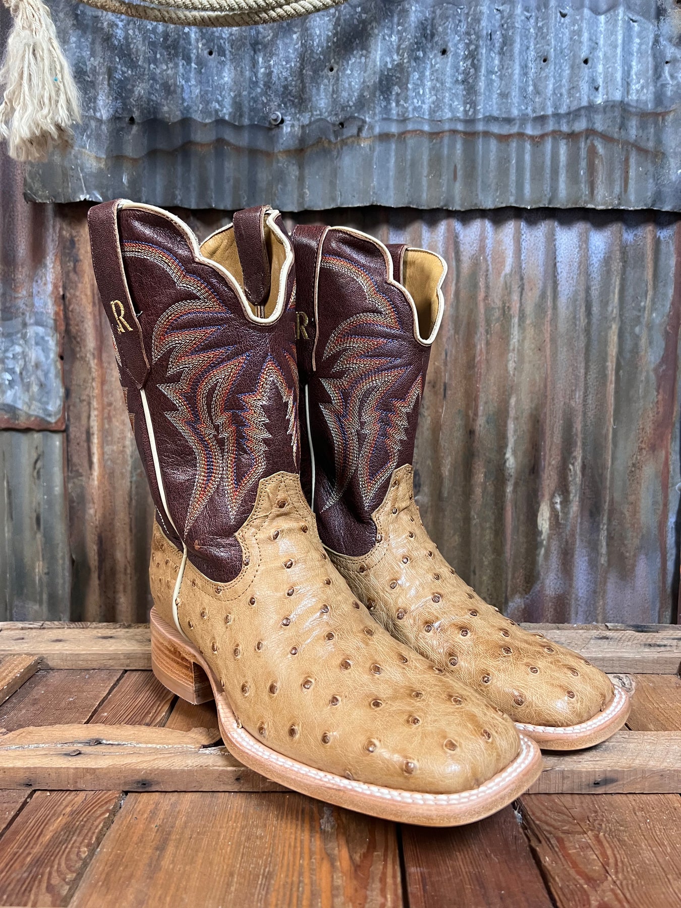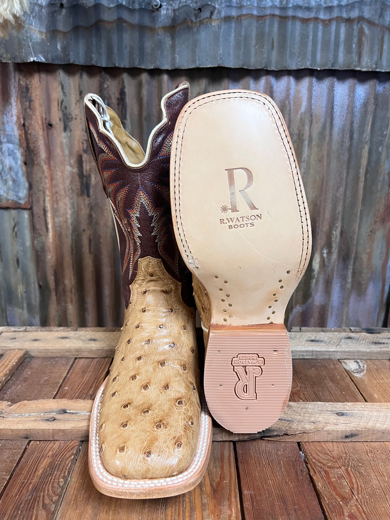 R. Watson presents these full quill ostrich and exotic western boots. These boots have a 10 row stitch pattern, R. Watson comfort system, all leather stacked heel, counters, solid steel shank, and 10 iron outsole. 11″ total in height.
