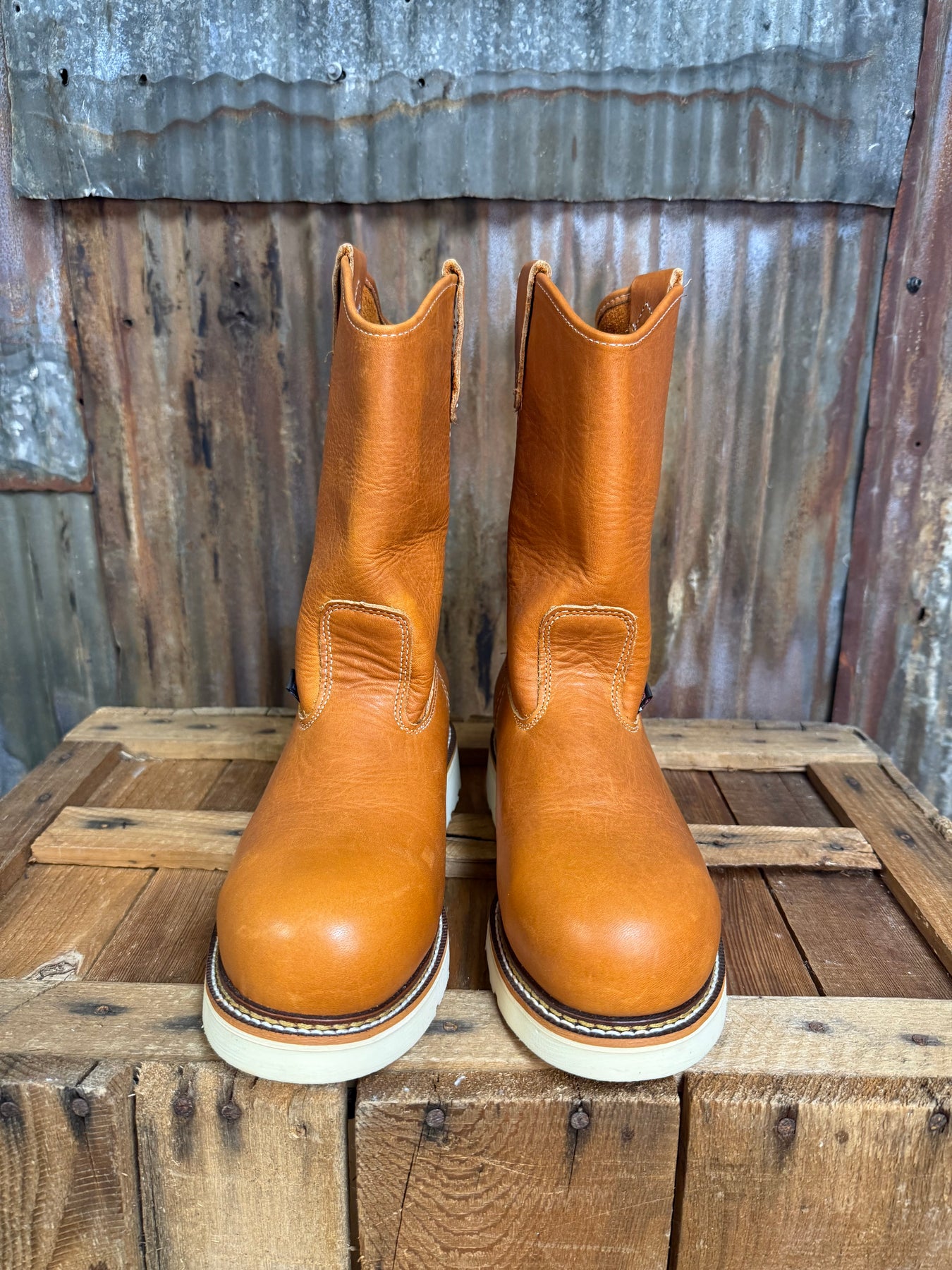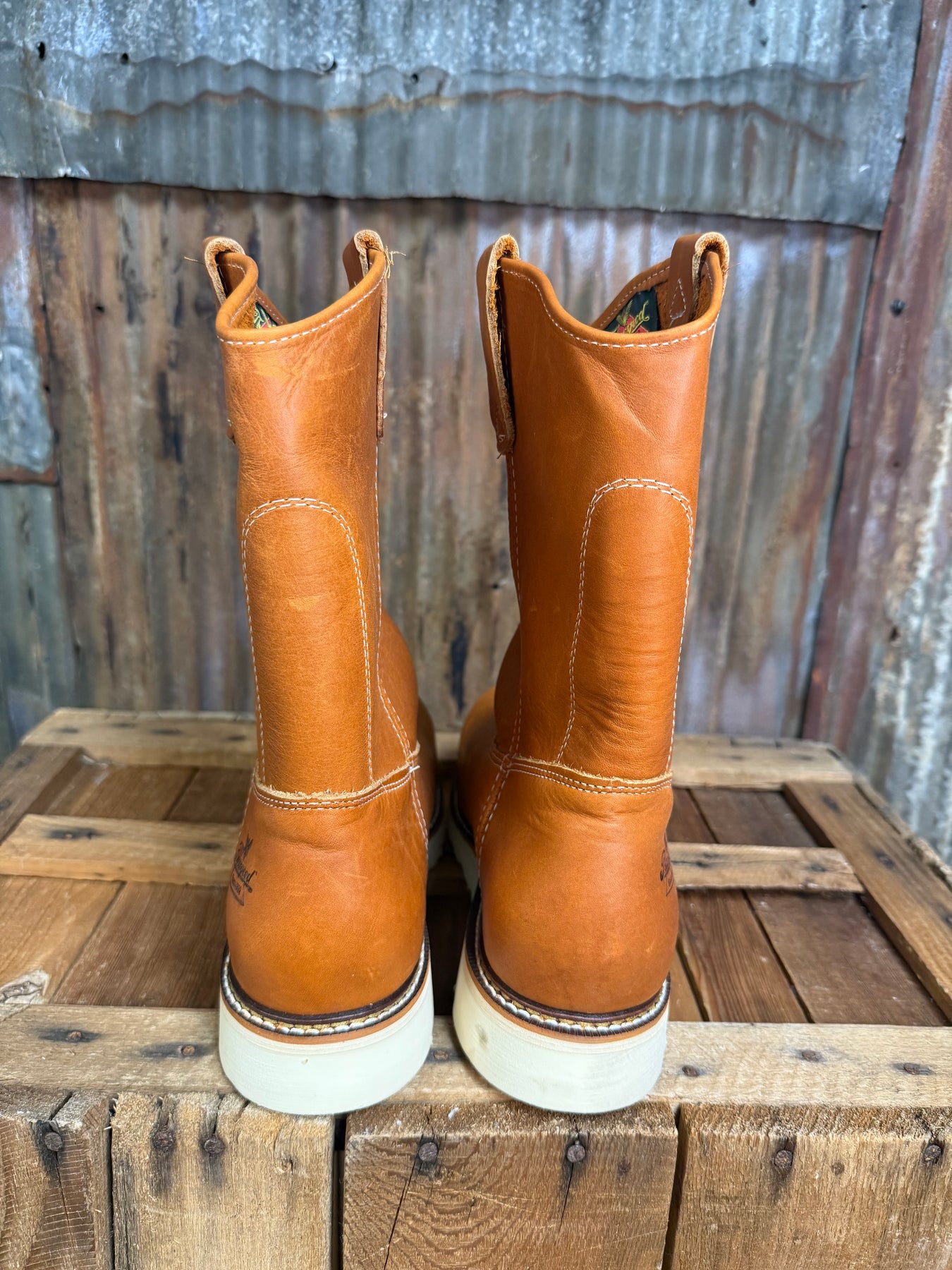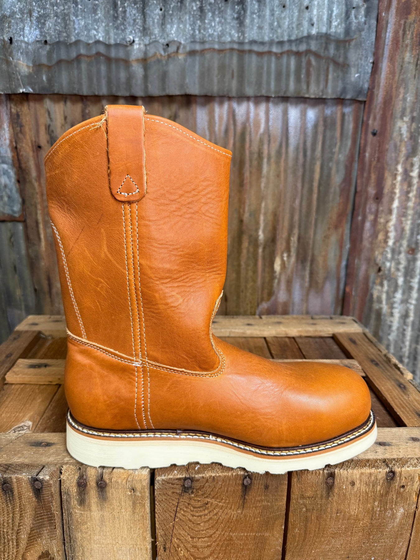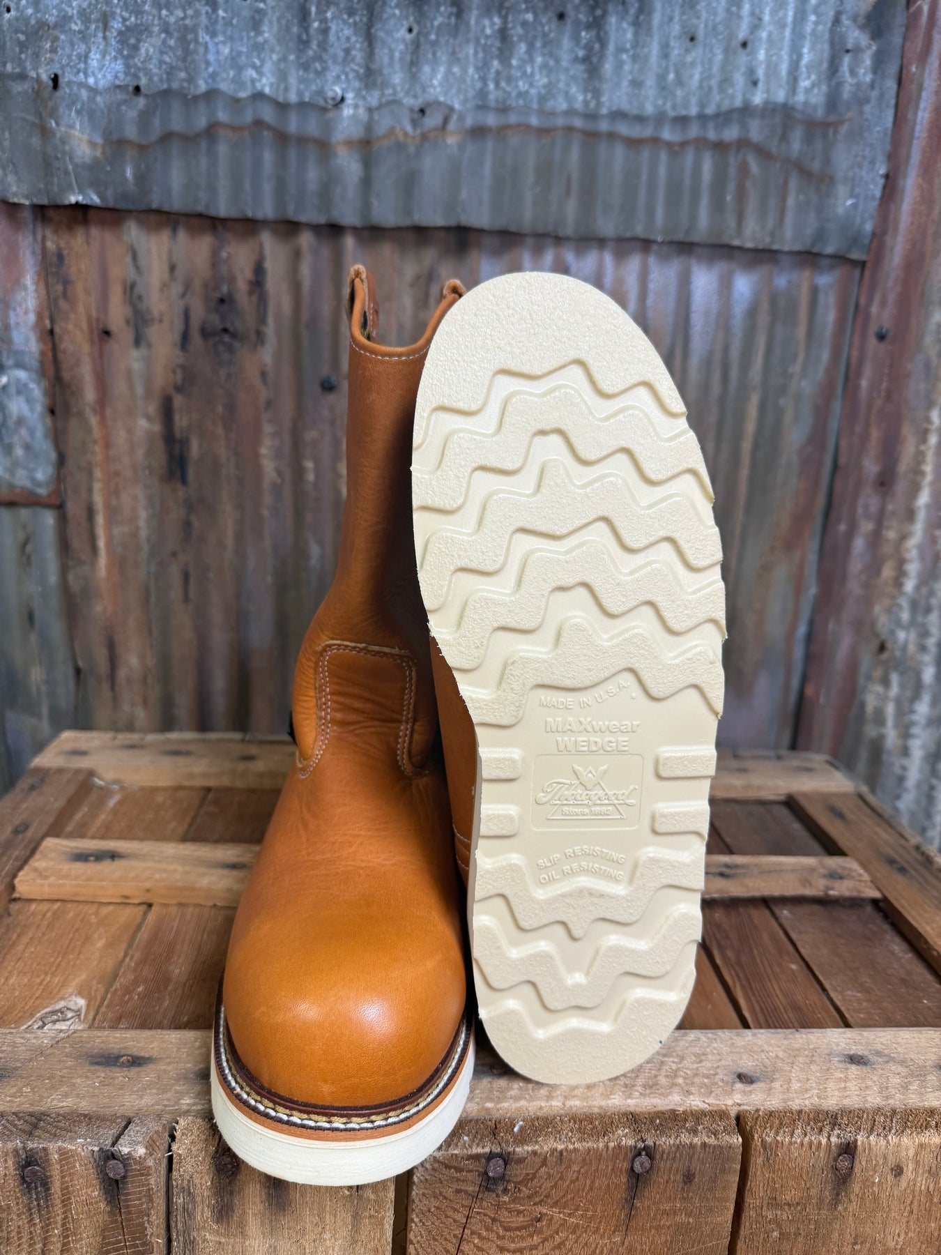 Getting the toe protection you need shouldn’t mean giving up the comfort and support of a great pair of work boots. American Heritage 11″ Tobacco safety toe pull-on Wellingtons deliver the shock-absorbing comfort and our Poron® comfort cushion insole combined with a steel safety toe to keep your feet protected. The MAXWear Wedge™ heel means your feet stay comfortable until the job is done. Plus, these full-grain leather work boots pull on easily, so you’ll know at least something in your day will be simple.