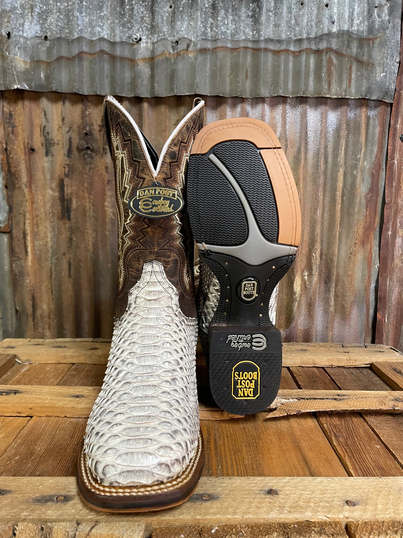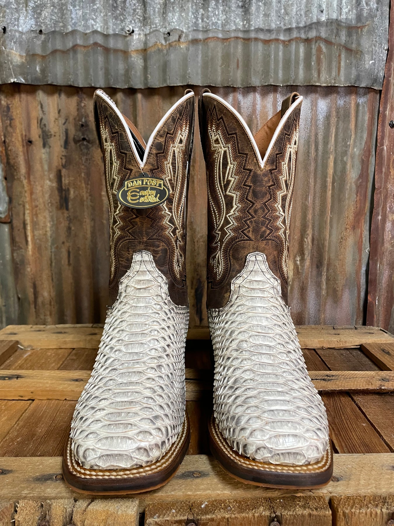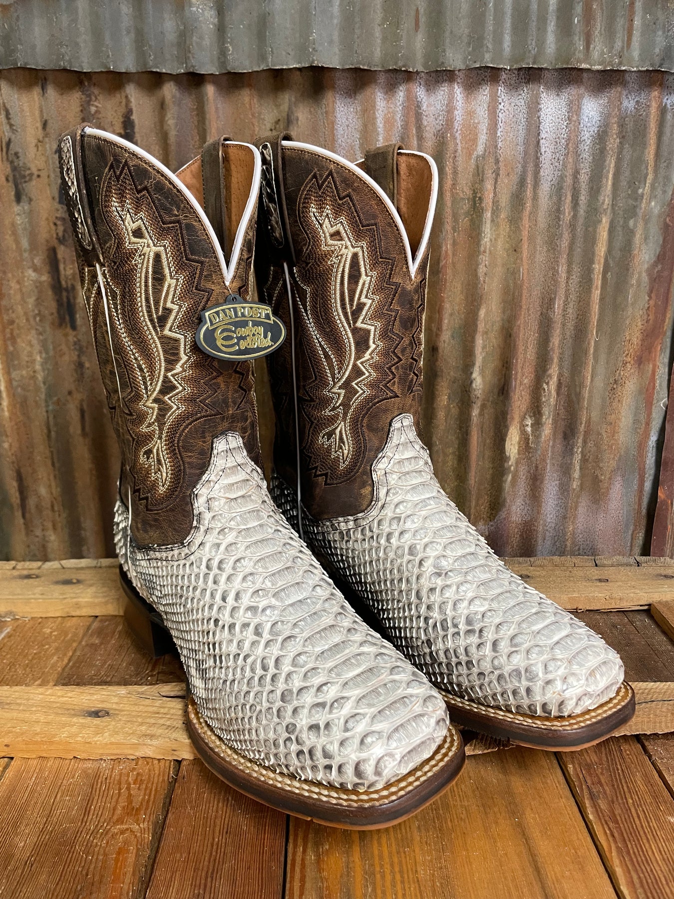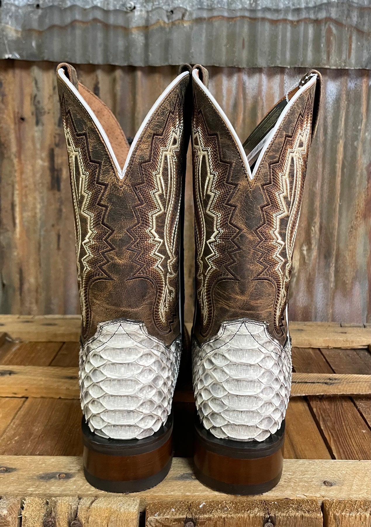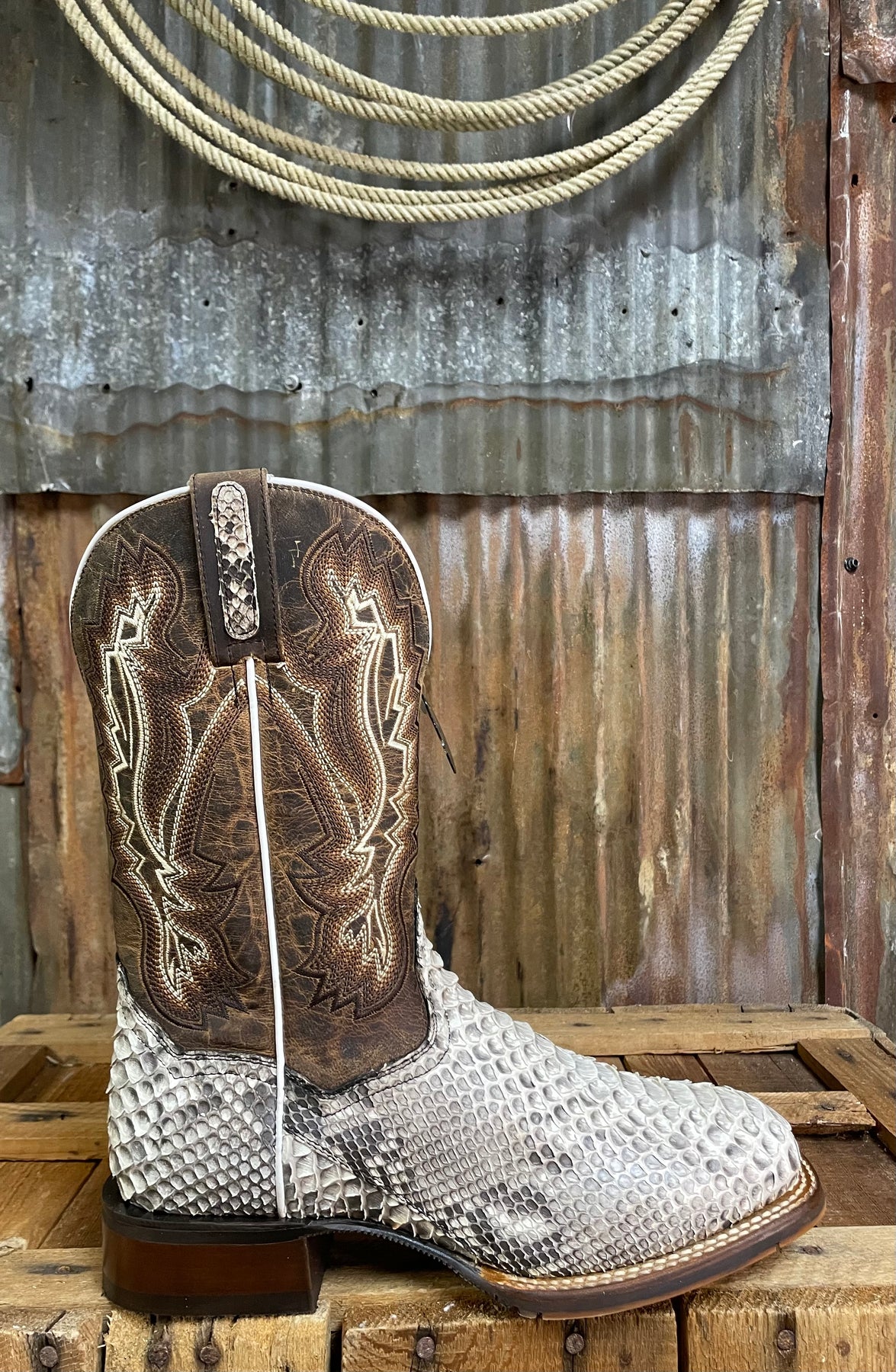Python boots are highly desired because of their distinctive pattern and texture. The Brutus is in a class by itself. Genuine natural python foot, fancy stitched multi-row stitch pattern on the upper and more python on the pull-strap for a balanced design. Soft Strike Orthotic gives comfort from step one. Brutus, one heck of a cowboy boot.