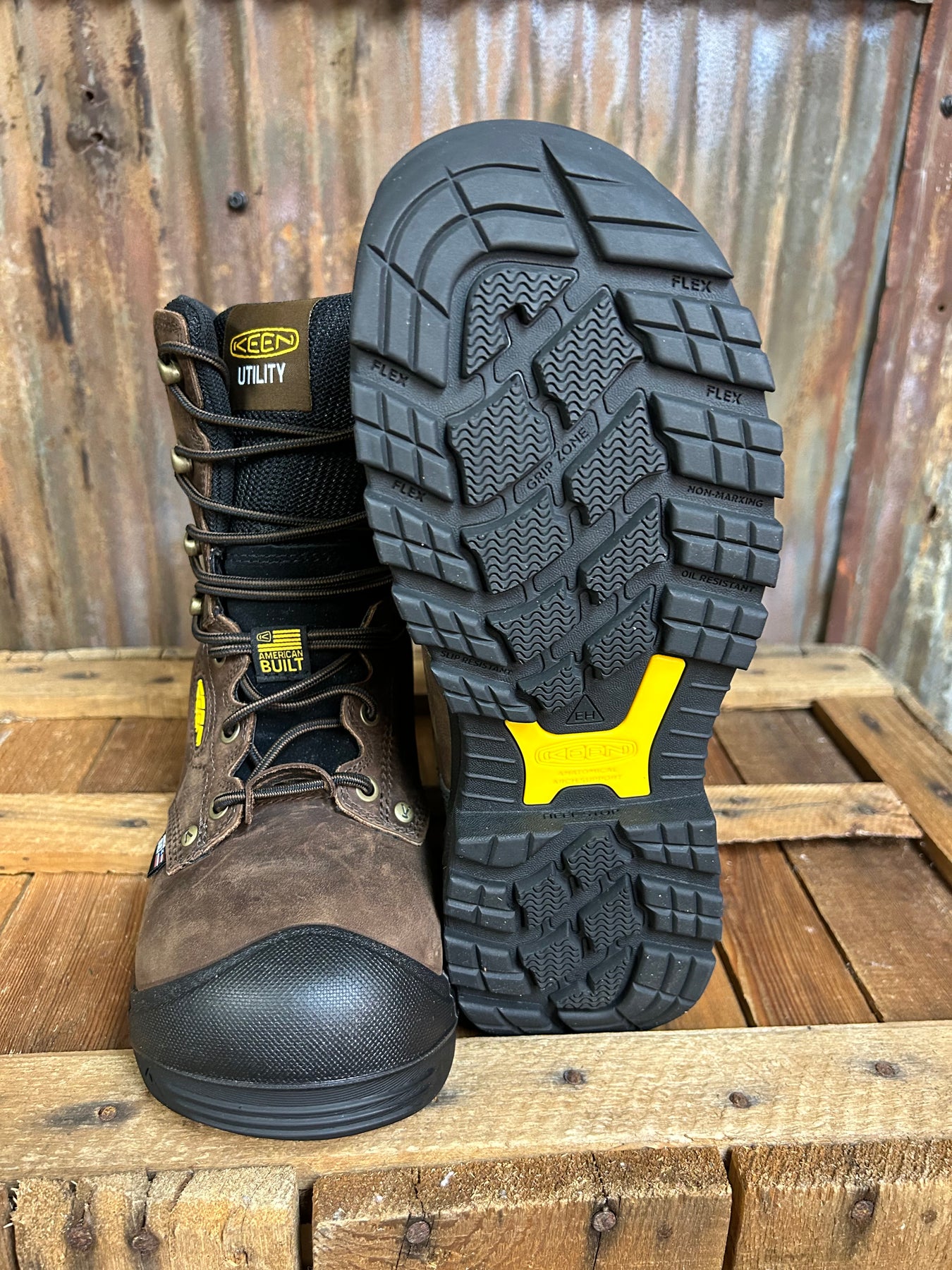 This style is built in the Pacific Northwest using carefully-sourced materials from around the world. The taller collar height provides additional ankle support and stability, while premium features like a KEEN.DRY waterproof, breathable membrane, carbon-fiber safety toes, air-injected LuftCell midsole, and lightweight, durable KEEN.ToughSole outsole keep you protected and productive for the long haul.