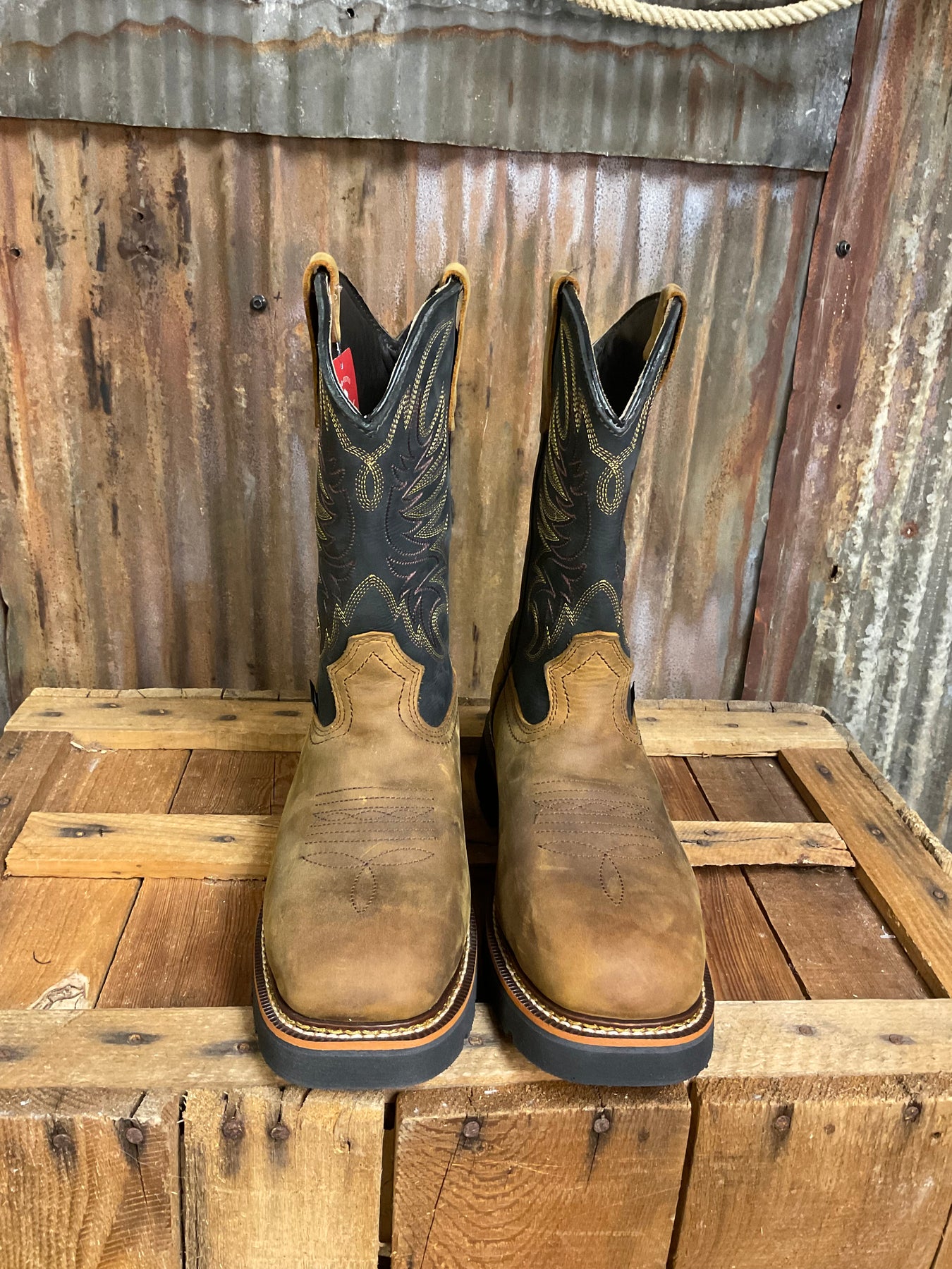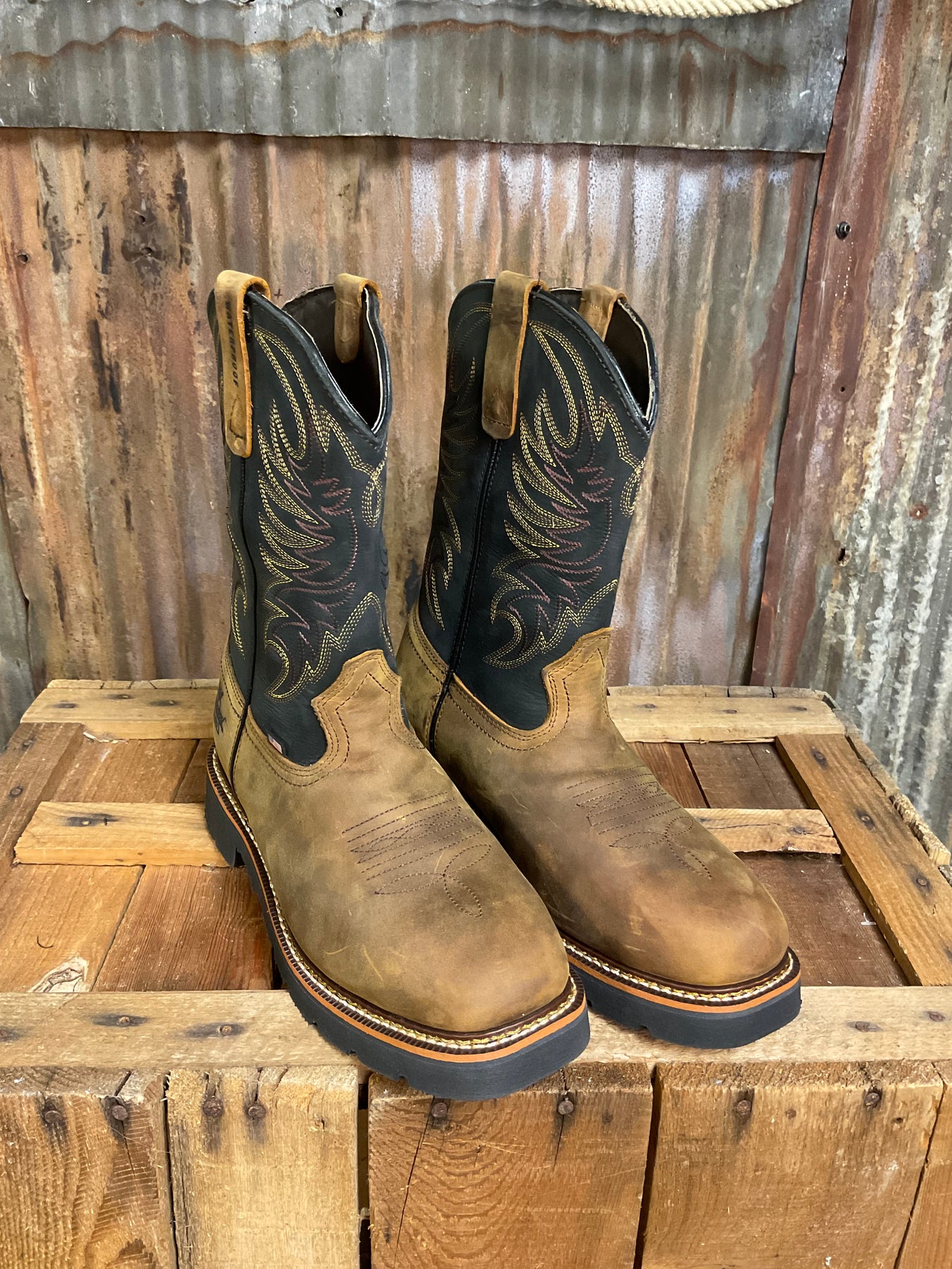 Who wants to change boots between work and a night out? No one, but traditional work boots don’t come with the comfort or style needed to go from swinging tools to swing dancing. That’s why we created the Thorogood Work Western 11″ black and Crazy Horse waterproof Wellington work boots with a non-safety toe. You’ll have the comfort you need with full-grain leather materials, an 11-inch shaft, and waterproof construction, and a slip-resisting and oil-resisting Wyatt90 outsole. Thorogood Boots are meticulously crafted using top-quality American leathers, ensuring both style and durability that can withstand the rigorous demands of today’s job-sites. Inside, our Ultimate Shock Absorption™ footbed gives you that added softness that keeps you on your feet all day long. In these work boots, you’ll have tons of toe space with our soft toe design! Even with a little mud on your boots, you can still head uptown tonight in these good lookin’ boots.