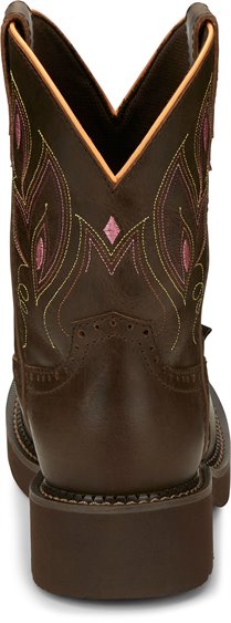 Delicate rose stitching, yellow piping and stylish broguing come together to give the 8” Gemma boot in Shetland Buffalo leather from the Justin Gypsy® Collection a special, unique look.