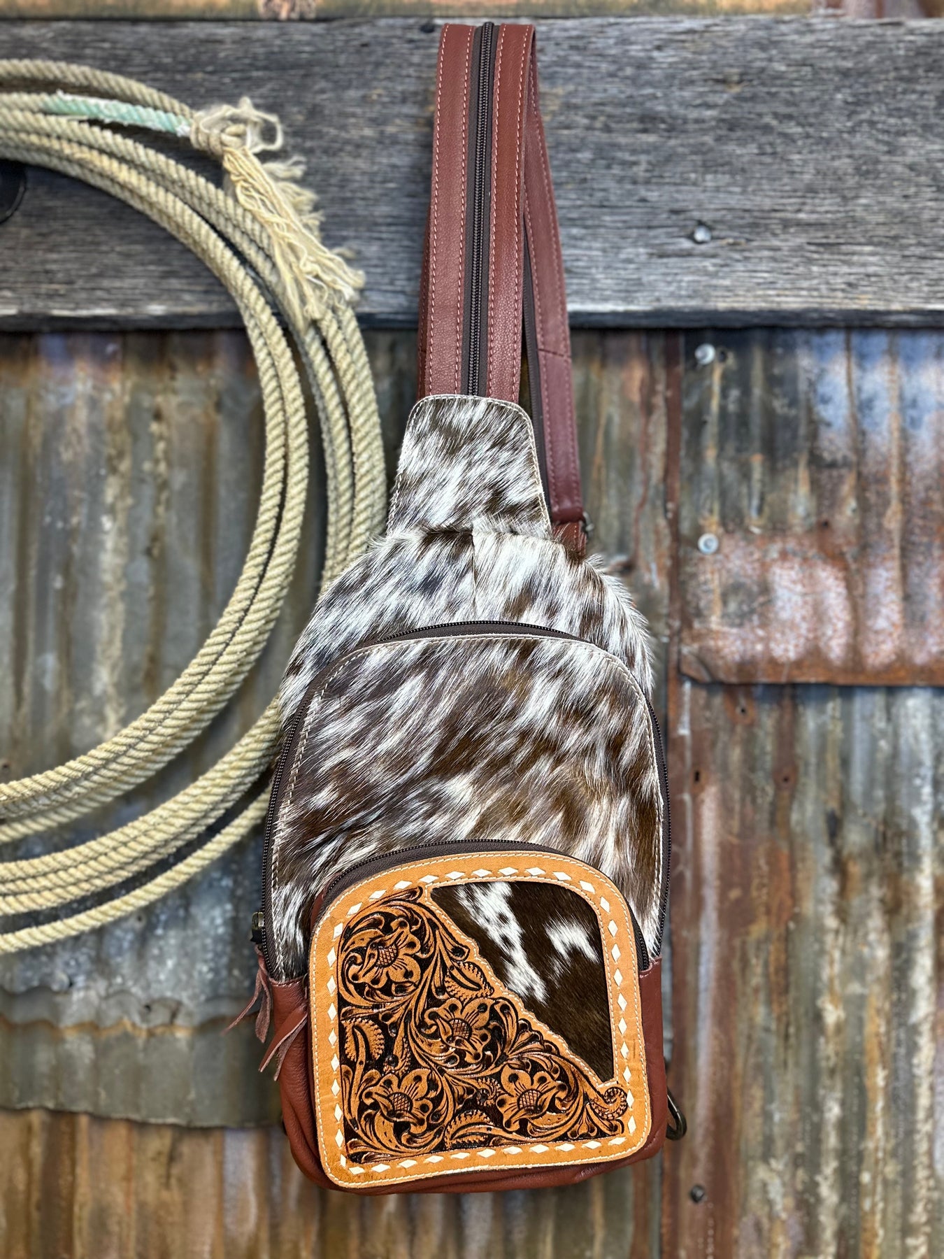Challenger Western Floral Tooled Cowhide Crossbody bag