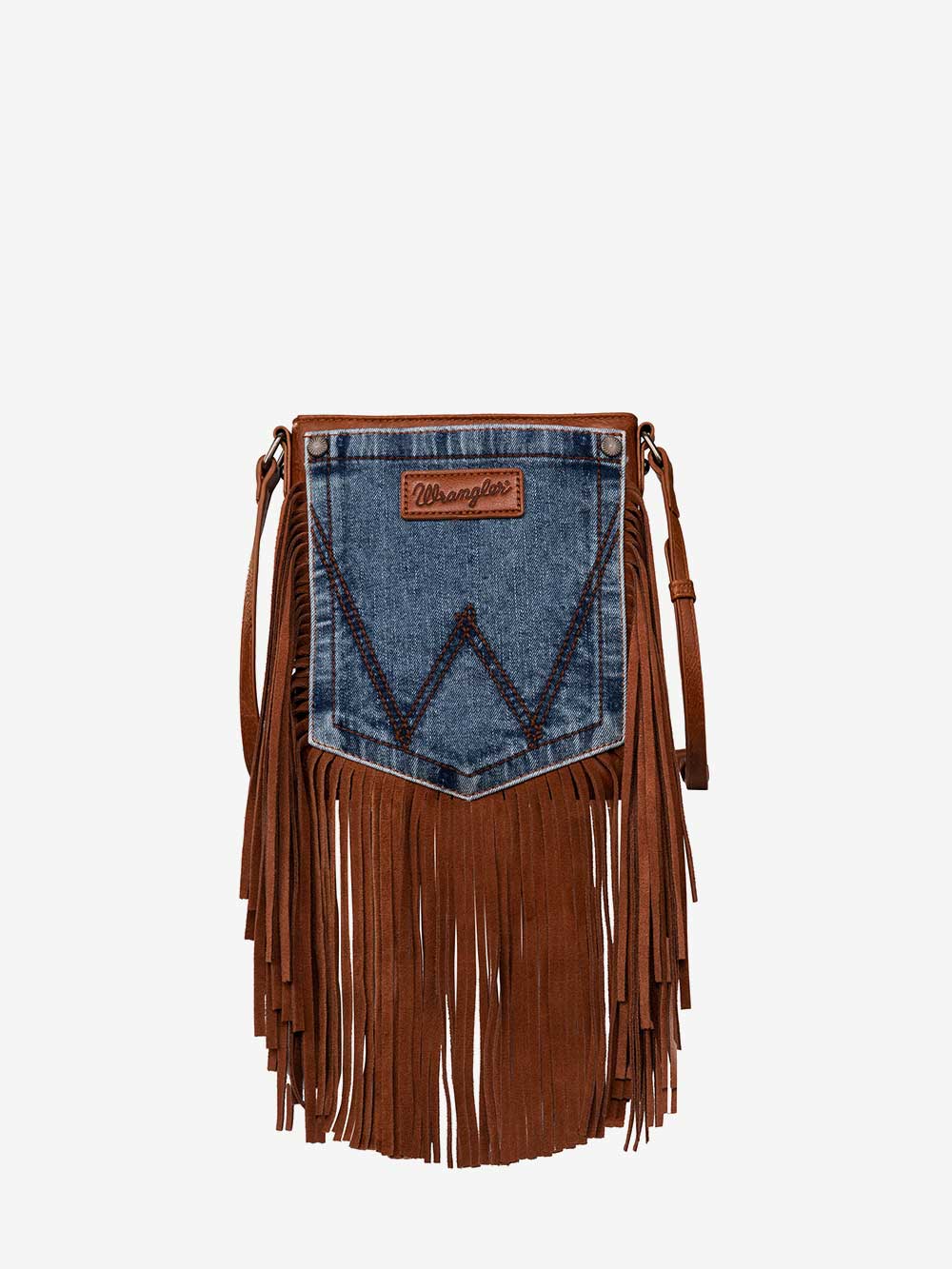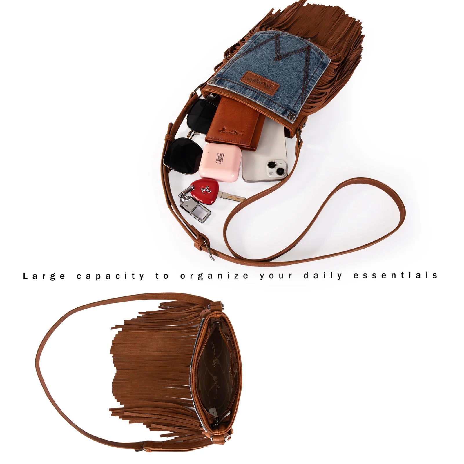 Montana West Wrangler Leather Fringe Jean Denim Pocket Crossbody