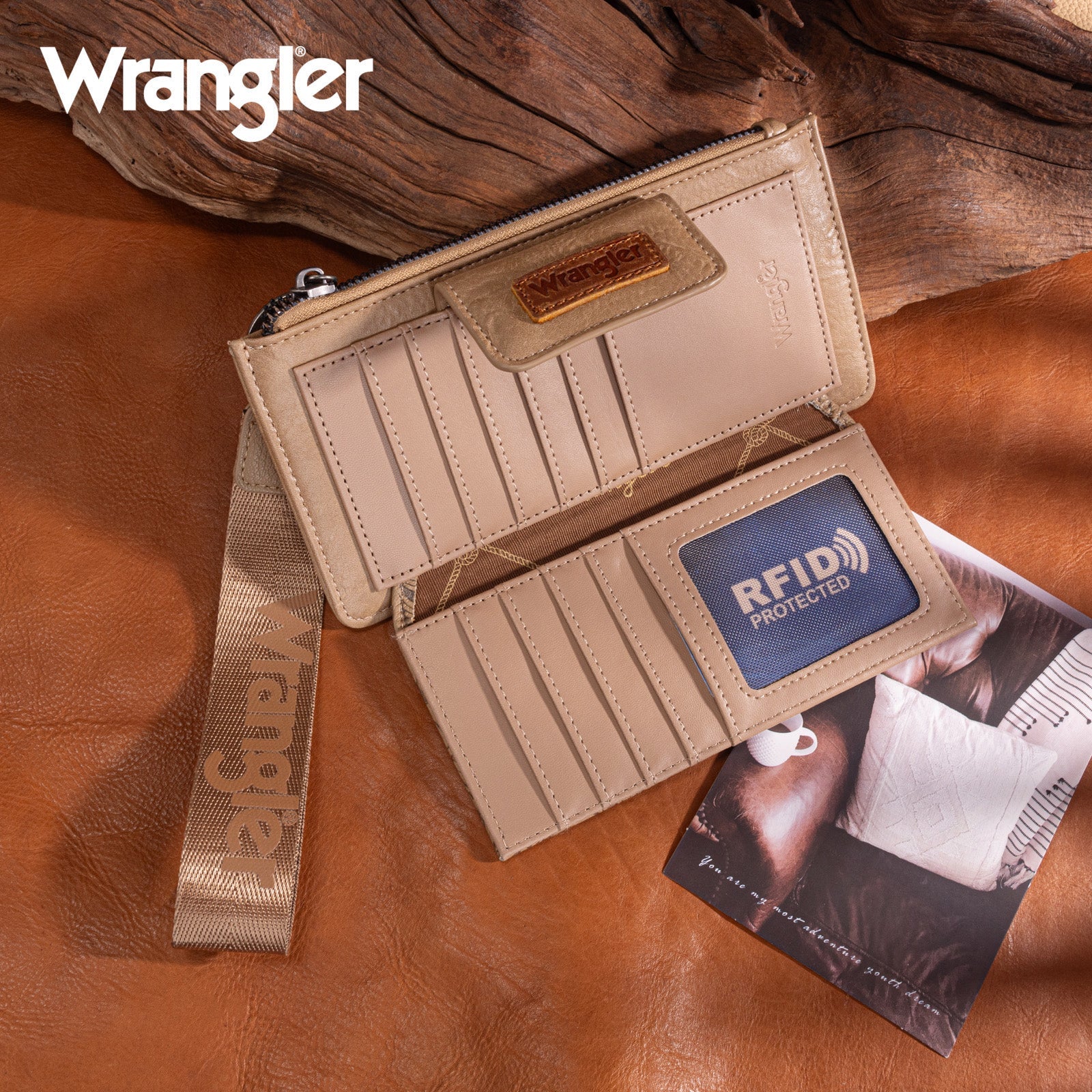 Wrangler Floral Tooled Card Wallet/Wristlet - Khaki