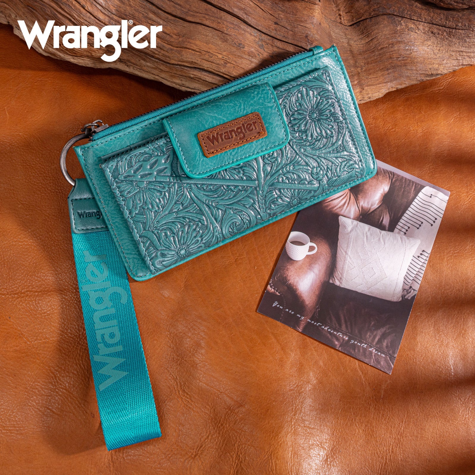 Wrangler Floral Tooled Card Wallet/Wristlet - Turquoise