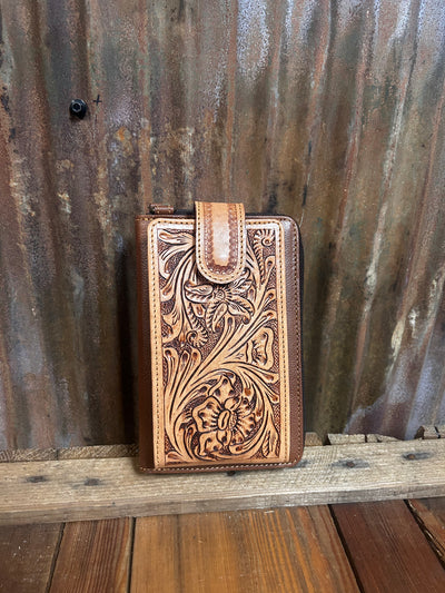 Challenger Hair on Hide Tooled Wallet/Wristlet